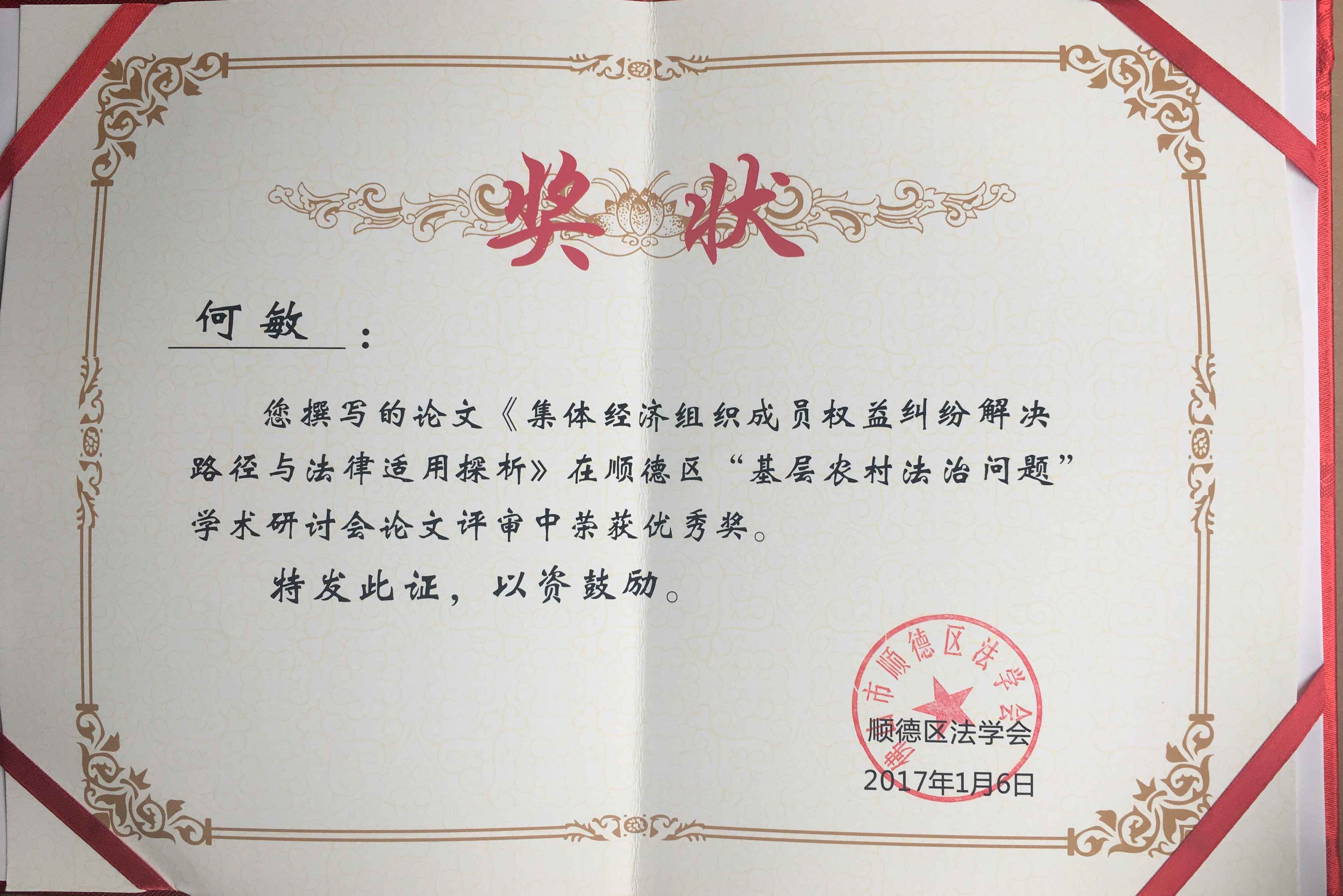 本文在2017年1月6日顺德区法学会年会暨顺德区“基层农村法治问题”学术研讨会中,获优秀论文奖。